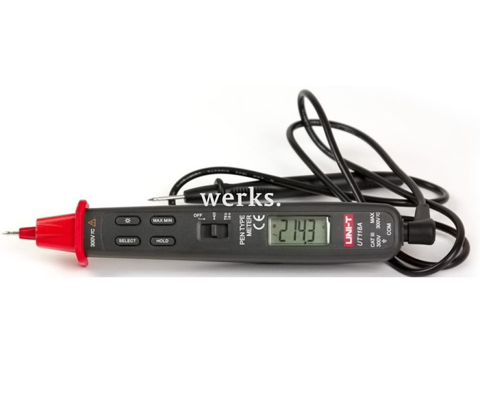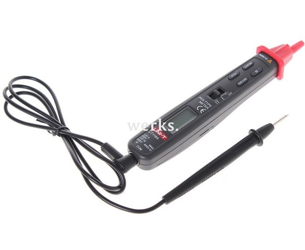 Надежный, безопасный и точный цифровой мультиметр-пробник. Он позволяет измерять постоянное и переменное напряжение, сопротивление, ёмкость, а также проводить прозвонку цепей и тестирование диодов. Автоматический выбор диапазона измерений. 4-разрядный ЖК-дисплей с подсветкой. Индикация разряда батареи. Функция сохранения показаний (HOLD) и режим MAX/MIN. Автоотключение при неактивности. В комплект входят щуп, батарейка и инструкция. Напряжение постоянного тока - 3 ~ 300 В (±1.0%±3) Напряжение переменного тока - 3 ~ 300 В (±1,0%±4) Электроемкость - 3 нФ/300 мкФ (±3.0%±5) Электрическое сопротивление - 300 Ω ~ 3 МΩ (±1.0%±3) Питание - 1 х 3 В таблеточная литиевая батарейка Li-MnO2 Размеры - 182 x 27 x 20 мм Вес - 90 г. Инструмент предназначен для измерения постоянного и переменного напряжения, сопротивления, ёмкости, тестирования диодов и прозвонки цепей.
