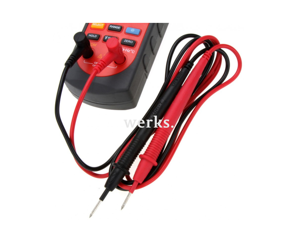 Надежные, безопасные и точные цифровые токоизмерительные клещи. Они позволяют измерять значения постоянного и переменного тока, напряжения, сопротивления, частоты, электроемкости, скважности импульсов и температуры, а также проводить прозвонку цепей и тестирование диодов. Инструмент автоматически выбирает диапазон измерений. Оснащен 4-разрядным ЖК-дисплеем с подсветкой. Имеет индикацию перегрузки, отрицательной полярности и разряда батареи. Функция сохранения показаний (HOLD) и автоотключение питания при простое. В комплект входят щуп, батарейка, упаковка и инструкция. Напряжение постоянного тока - 400 мВ/4/40/400/1000 В (±0,8%±1) Напряжение переменного тока - 400 мВ/4/40/400/750 В (±1,2%±3) Переменный ток - 40/400/1000 А (±2,0%±2) Постоянный ток - 40/400/1000 А (±1,5%±5) Электрическое сопротивление - 400 Ω/4/40/400 KΩ/4/40 МΩ (±1,0%±2) Частота - 10 Гц ~ 10 МГц (±0,1%±3) Электроемкость - 4/40/400 нФ/4/40/100 мкФ (±4,0%±3) Температура - -40°C ~ 1000°C ±(2.5%+3) Коэффициент заполнения - 0,1% ~ 99,9% Ширина раскрытия - 55 мм Питание - 1 х 9 В батарейка 6F22 (типа Крона) Размеры - 285 x 105 x 44 мм Вес - 533 г. Инструмент предназначен для измерения постоянного и переменного тока, напряжения, сопротивления, частоты, электроемкости, скважности импульсов, температуры, а также для тестирования диодов и прозвонки цепей.
