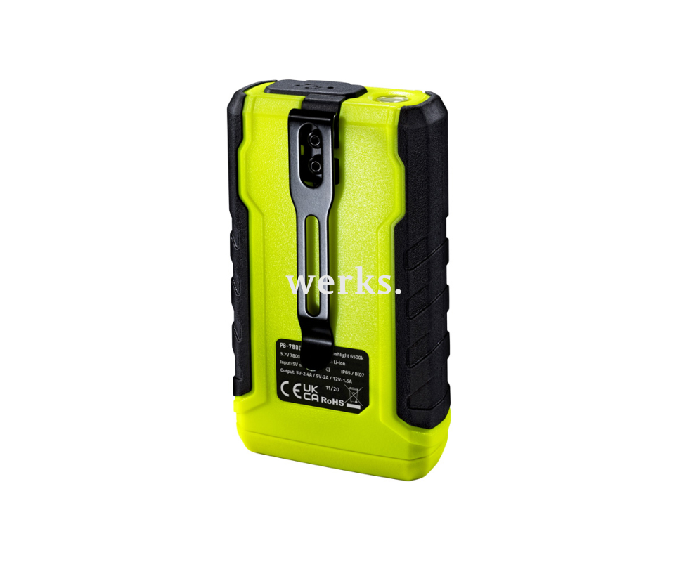 Промышленный Power Bank с прочным корпусом из нейлона и TPR. Он полностью защищен от неблагоприятных погодных условий, обладает защитой от пыли и влаги по стандарту IP65, а также ударопрочностью IK07 и способностью выдерживать падение с высоты до 2 метров. Адаптивная батарея предлагает несколько выходов: 5В 2,4А / 9В 2А / 12В 1,5А, а также включает защиту от перезарядки, перегрузки, глубокой разрядки и короткого замыкания. Устройство можно крепить как с помощью магнитов, так и с помощью карманного крепления. В дополнение имеется фонарь с SMD светодиодом мощностью 250 Лм.