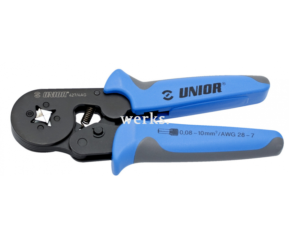 Изготовлены из хромованадиевой стали премиум-класса, обработаны фосфатированием в соответствии с нормами ISO 9717. Оснащены прочными двухкомпонентными рукоятками, устойчивыми к износу. Преимущества: выполнены из прочного металлического профиля с защитным покрытием, имеют пружину с повышенной жесткостью и длительный срок службы. Обжатие квадратной формы обеспечивает лучший контакт по сравнению с традиционными методами. Подходят для изолированных проводов сечением от 0,08 до 10 мм² / AWG 28 - 7.