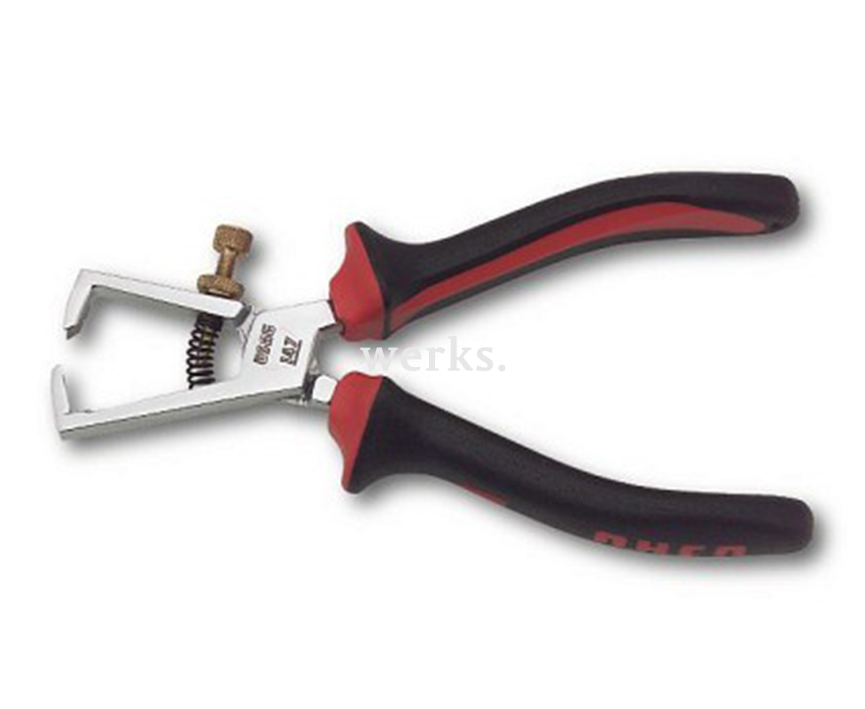Клещи для снятия изоляции USAG модели 147 N U01470050 длиной 160 мм. Они предназначены для удаления изоляции с проводов диаметром до 7 мм. Инструмент оснащен пружинным механизмом и специальным винтом для настройки глубины зачистки. Этот инструмент значительно ускорит процесс и уменьшит затраты труда при работе с большим объемом кабеля.