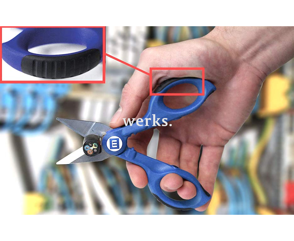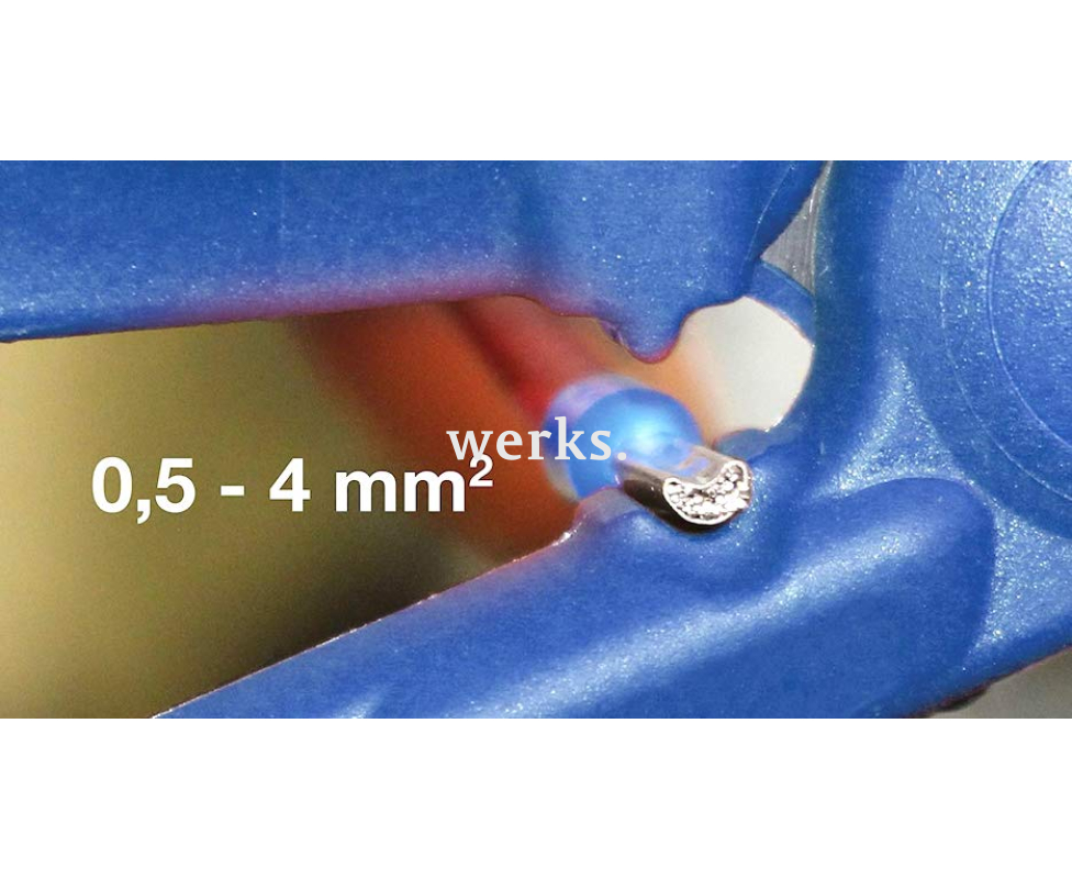 Универсальные ножницы, изготовленные из высококачественной нержавеющей стали. Они предназначены для резки монтажного кабеля типов ВВГ, NYM, ПВС с диаметром оболочки до 13 мм, а также одножильных многопроволочных кабелей с сечением до 35 мм² и для снятия изоляции с круглых проводов. Уникальный профиль заточки и высокая твердость лезвий обеспечивают аккуратный рез. Микронасечка на режущих кромках предотвращает выскальзывание провода между лезвиями. Эргономичные рукоятки из двух компонентов с рифлеными вставками-упорами снаружи увеличивают усилие при резке. Прочный безлюфтовый соединительный шарнир. На внутренней стороне рукояток имеется паз для обжима втулочных наконечников сечением 0,5 ~ 4 мм². В комплект входит пластиковый футляр для хранения и подвешивания. WCN52000035