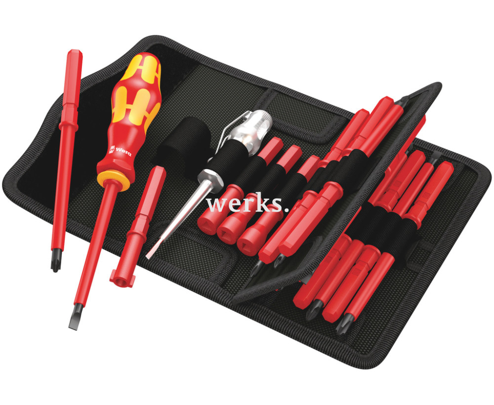 1 ручной держатель 817 VDE Kraftform, предназначенный исключительно для использования с заменяемыми стержнями WERA VDE. Сменные рабочие концы VDE (длиной 154 мм). Однополюсный индикатор напряжения. Набор состоит из 18 предметов. Набор изолированных отверток SL PH PZ PZ/S Wera Kraftform Kompakt VDE 60 i/62 i/65 i/18 с индикатором напряжения включает 18 предметов. Это профессиональный комплект диэлектрических инструментов, идеально подходящий для электромонтажников.