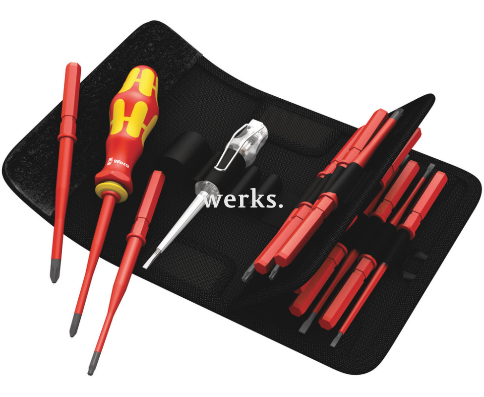 Ручной держатель 817 VDE Kraftform предназначен исключительно для использования с заменяемыми стержнями WERA VDE. Сменные насадки VDE длиной 154 мм имеют защитную изоляцию и уменьшенный диаметр рабочего конца, что позволяет легко добираться до глубоко расположенных винтовых и пружинных элементов. В комплект также входит однополюсный индикатор напряжения. Набор состоит из 16 предметов, включая изолированные отвертки SL, PH, PZ, PZ/S и TORX Wera Kraftform Kompakt VDE 60 iS/65 iS/67 iS/16. В набор входят сменные отверточные жала VDE с основными шлицами, ручка-держатель и однополюсный пробник, все упаковано в прочную поясную сумку.