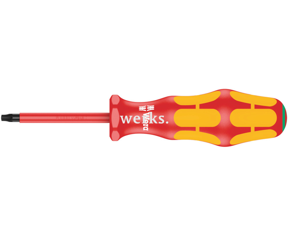 Диэлектрическая отвертка Wera Kraftform Plus 167 i VDE предназначена для работы с шестилучевыми шлицами TORX размером Т20х80 мм. Изолированное круглое лезвие изготовлено из прочной стали и обеспечивает надежную защиту.