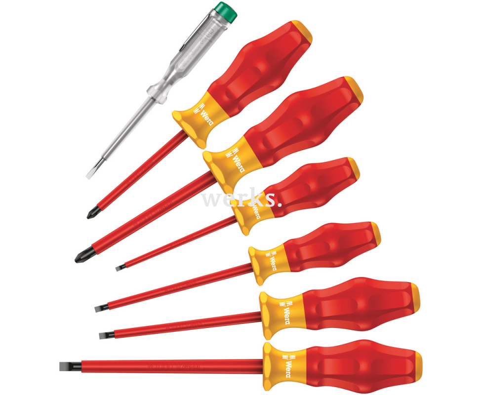 Применение: Винты с прямым и крестовым шлицем Phillips-Recess Исполнение: 7 компонентов в картонной упаковке Набор изолированных отверток SL PH Wera Kraftform Comfort VDE с индикатором напряжения 1160 i/7 включает 7 предметов. Все инструменты соответствуют стандартам VDE, что делает этот набор идеальным для электромонтажных работ.