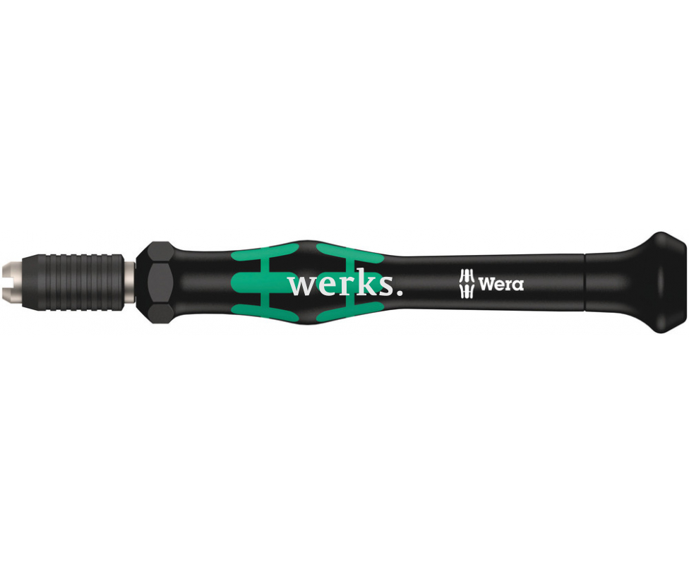 Ручной держатель насадок Wera Kraftform Micro 1013. Оснащен защитой от перекатывания. Совместим с битами с шестигранным хвостовиком 4 мм Halfmoon и 4 мм HIOS. Имеет вращающийся наконечник.