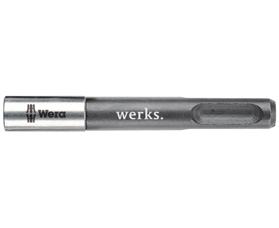 Профессиональный универсальный держатель 1/4' х 79 WE-053485 длиной 79 мм и диаметром рабочей части 10,5 мм, оснащённый гнездом для бит 1/4' и приводом SDS plus, выполнен с втулкой из нержавеющей стали.