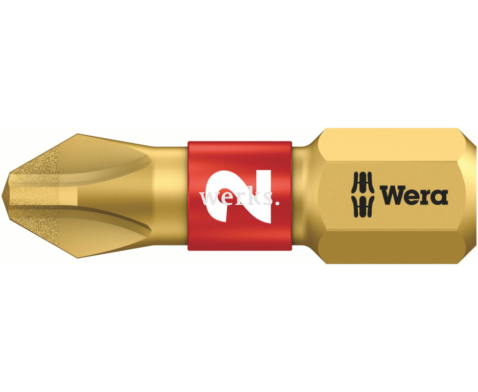 Устойчивый и надежный бит 851/1 BDC PH 2 х 25 WERA WE-056402 с профилем PH 2 и длиной 25 мм, оснащенный цветовой маркировкой наконечника (красный - Phillips).