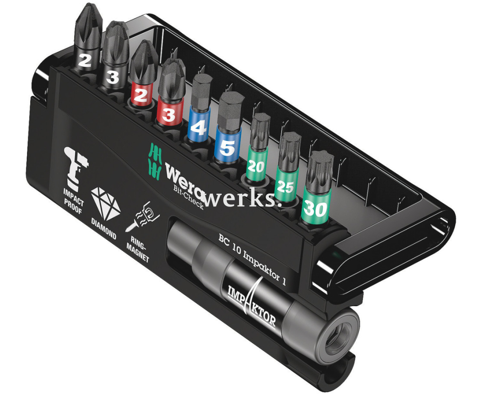 Bit-Check 10 Impaktor 1 Набор насадок (PH, PZ, TX, HEX) и держатель Wera WE-057680