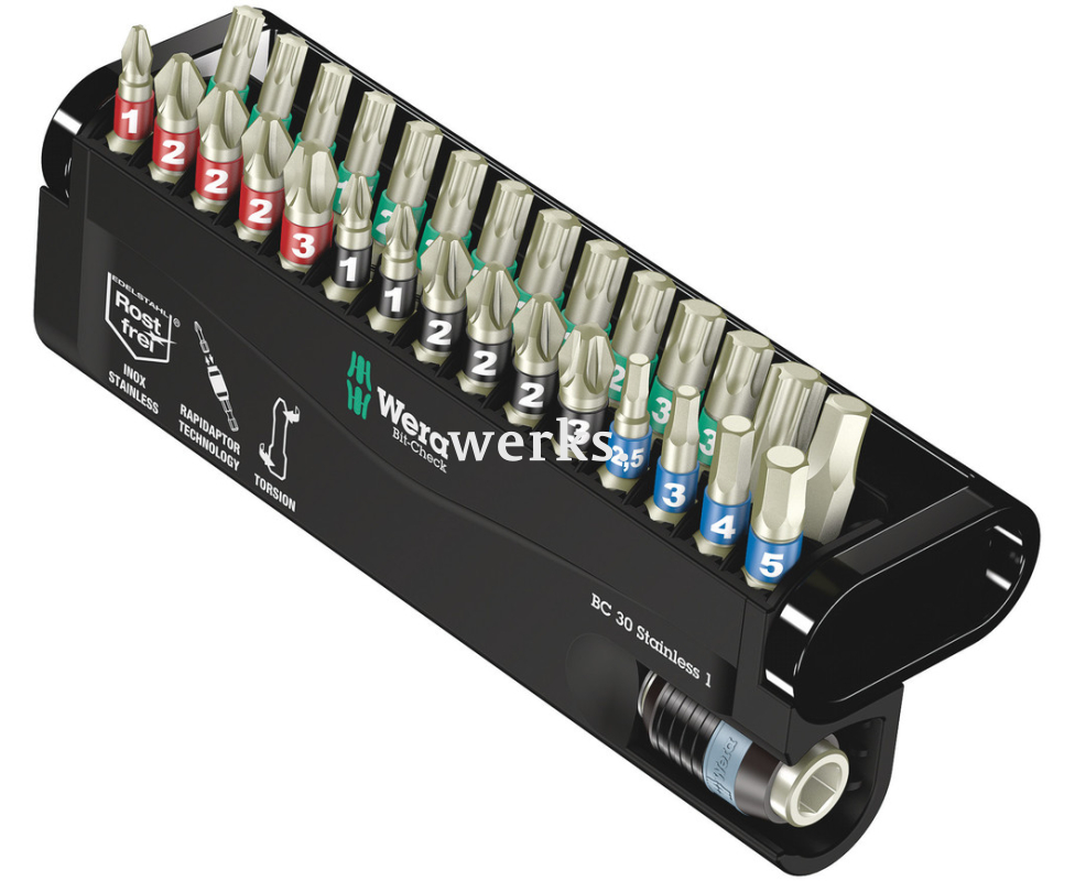 29 бит длиной 25 мм и один держатель из нержавеющей стали Rapidaptor. Инструменты из нержавеющей стали минимизируют риск появления контактной ржавчины при закручивании винтов из нержавеющей стали.