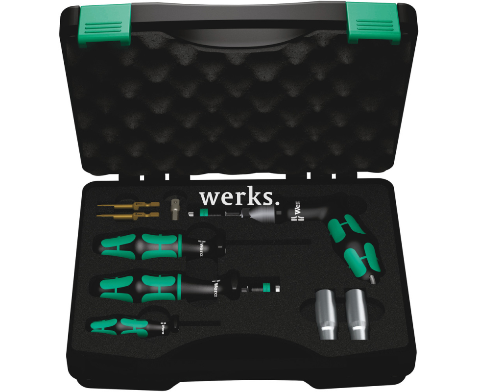 Система мониторинга давления в шинах автомобилей. Комплект инструментов для профессиональной установки системы контроля давления в шинах, состоящий из 9 элементов. Инструменты оснащены технологией контролируемой затяжки винтов и многокомпонентной ручкой Kraftform, что обеспечивает высокую скорость работы. В набор входят два инструмента для соединения накидной гайки с винтом и для крепления датчика к вентилю, отвертка с пистолетной рукояткой Kraftform для установки момента затяжки от 4,0 до 8,8 Нм, два бит TX с фиксирующей функцией, адаптер для головок, две торцевые головки и фиксатор вентиля, все упаковано в прочный пластиковый кейс.