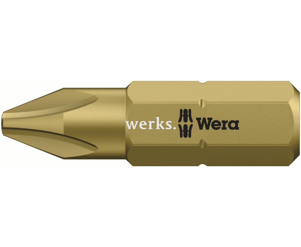 Сверхтвердая крестовая насадка WERA WE-134921 с обозначением 851/1 A имеет длину 25 мм и профиль PH 3, а также шестигранный концевик размером 1/4'.