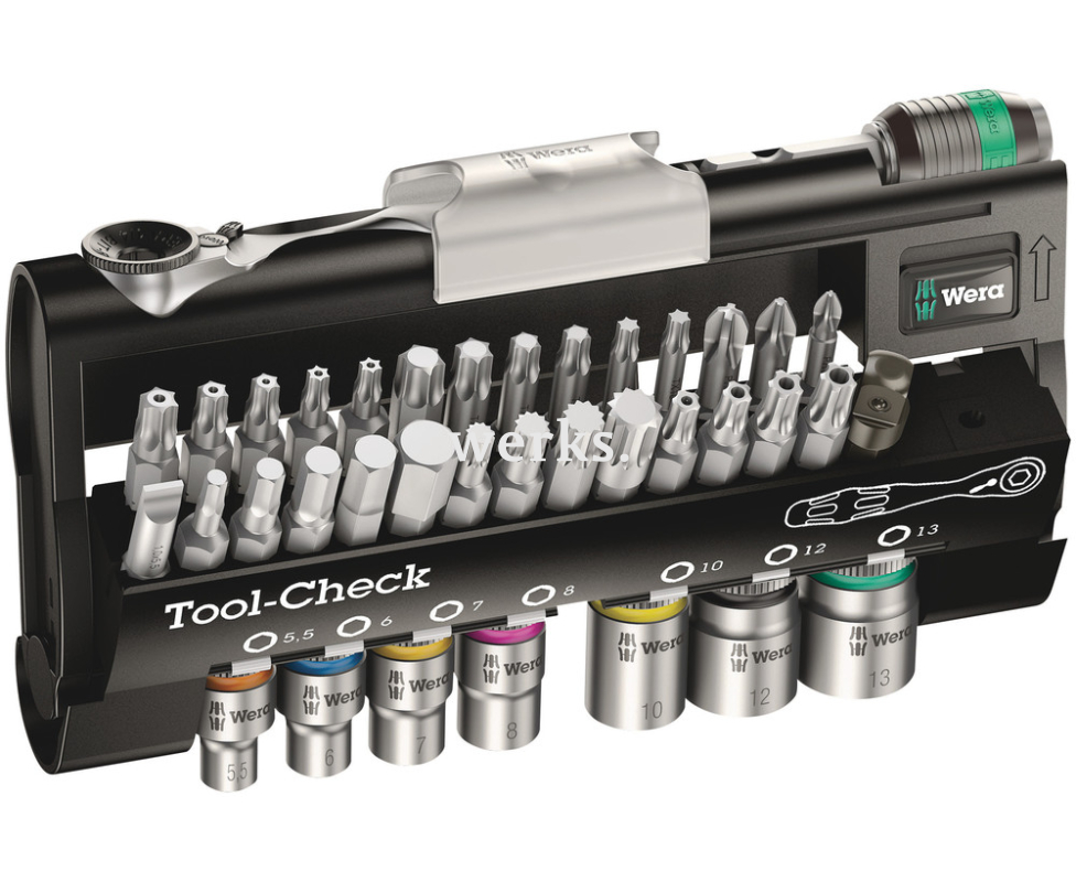 28 бит размером 25 мм, 7 насадок для ручного и машинного использования, адаптер Rapidaptor, адаптер 870/1 для перехода с шестигранника 1/4' на квадрат 1/4', трещотка Wera для крепления насадок с приводом и наружным шестигранником 1/4', а также насадки для подключения рядов 1 и 4 (с использованием адаптера Wera 870/1 возможно применение насадок 1/4'). Универсальный комплект включает держатель Rapidaptor, адаптер с шестигранника 1/4' на квадрат 1/4', стальную трещотку и 28 бит размером 25 мм. Упакован в компактный и прочный пластиковый кейс, удобный для хранения и транспортировки. Идеальный помощник для автолюбителей и автомастеров на сервисе.