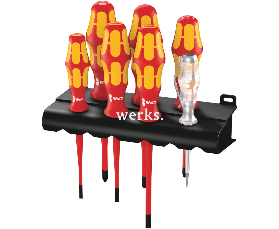 Набор отверток VDE + индикатор напряжения + подставка Wera Kraftform 160 iS/7 Rack WE-006480 с уменьшенным Ø рабочего конца