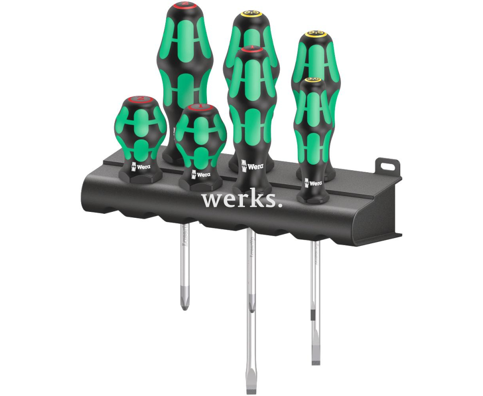 Набор отверток SL PH Wera Kraftform 300/7 Mix 1 включает 7 предметов, предназначенных для работы с винтами с прямым и крестовым шлицем Phillips-Recess. Применение: Винты с прямым шлицем и крестовым шлицем Phillips-Recess. Исполнение: 7 штук с подставкой. Этот универсальный набор отверток отличается цветовой маркировкой профиля и лазерной гравировкой размеров. Специальная обработка жал Lasertip обеспечивает высокую защиту от коррозии и точную посадку на шлиц винта, что делает его идеальным для работы в ограниченных пространствах.