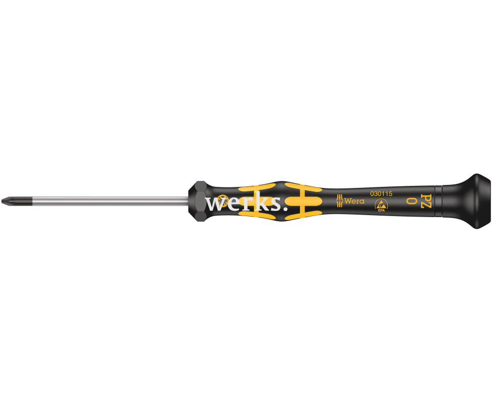 Отвертка Wera Kraftform Micro ESD 1555 PZ предназначена для работы с крестовыми шлицами Pozidriv PZ1 размером 80 мм. Эта прецизионная антистатическая отвертка оснащена стальным жалом с матовым никелевым покрытием и рабочим наконечником Black Point.