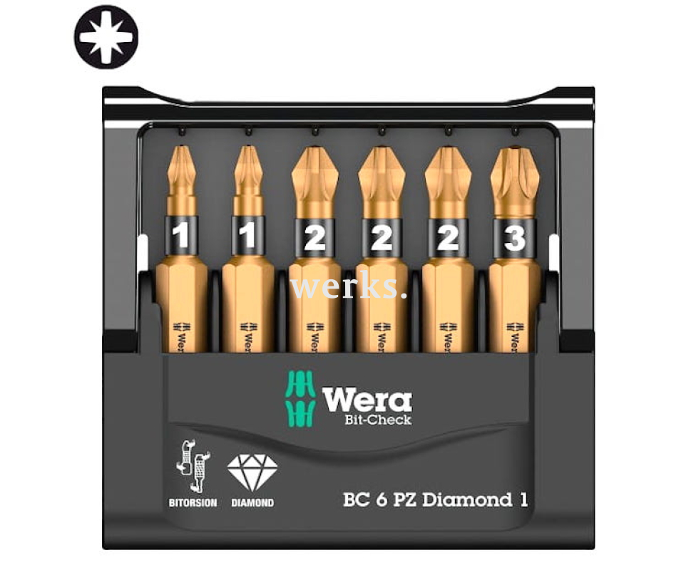 Набор насадок PZ Bit-Check 6 PZ Diamond 1 Wera WE-057402 6 пр.