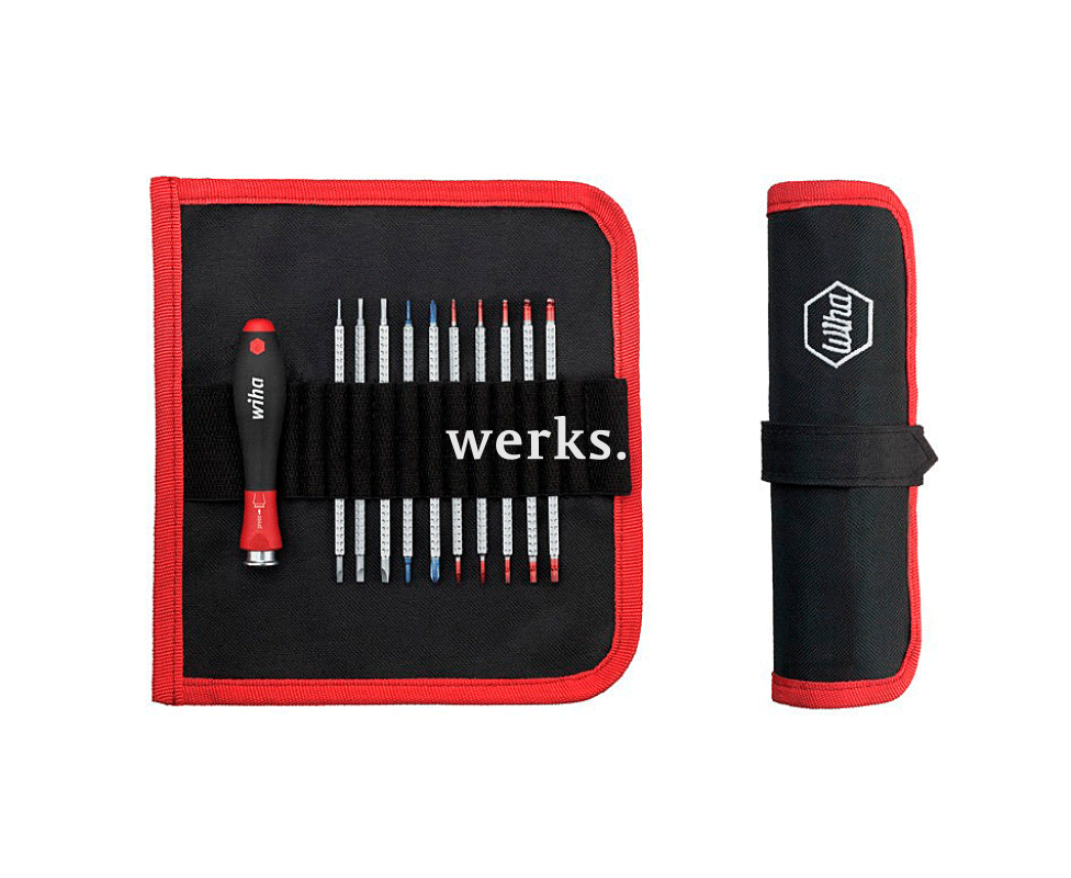 Комплект комбинированных бит (шлиц, Phillips, HEX и HEX с шарообразной головкой) изготовлен из высоколегированной хром-ванадий-молибденовой стали и оснащен наконечником Wiha ChromTop с цветовой кодировкой. Набор включает рукоятку System 4 SoftFinish telescopic, что делает его идеальным для точных операций в области механики и электроники. Сумка удобно сворачивается в рулон. Материал: CR-V, молибден. Закалка и хромирование. Рукоятка: System 4 SoftFinish telescopic, шариковый зажим. Наконечник: Wiha ChromTop с цветовой маркировкой.