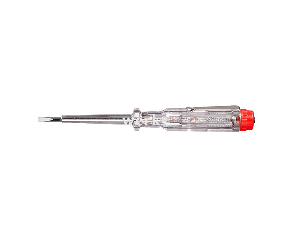 Однополюсный пробник напряжения 220-250 В с жалом из хромванадиевой стали и прозрачной рукояткой с зажимом. Используется для измерения переменных напряжений в диапазоне до 250 В относительно земли. Имеет сертификаты VDE и GS. Материал: CR-V. Никелирование, закалка. Рукоятка: прозрачная, с зажимом.