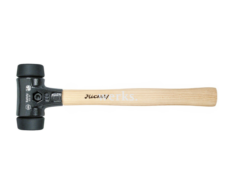 Надежный Молоток среднемягкий Wiha Safety 832-33 26433 с черной головкой длиной 400 мм и весом 1700 г. Оснащен деревянной рукояткой из кария, обладающей эргономичным дизайном и нескользящей поверхностью. Корпус выполнен в виде безопасной оболочки из ковкого чугуна с порошковым покрытием и канавками для надежного зажима головки и рукоятки.