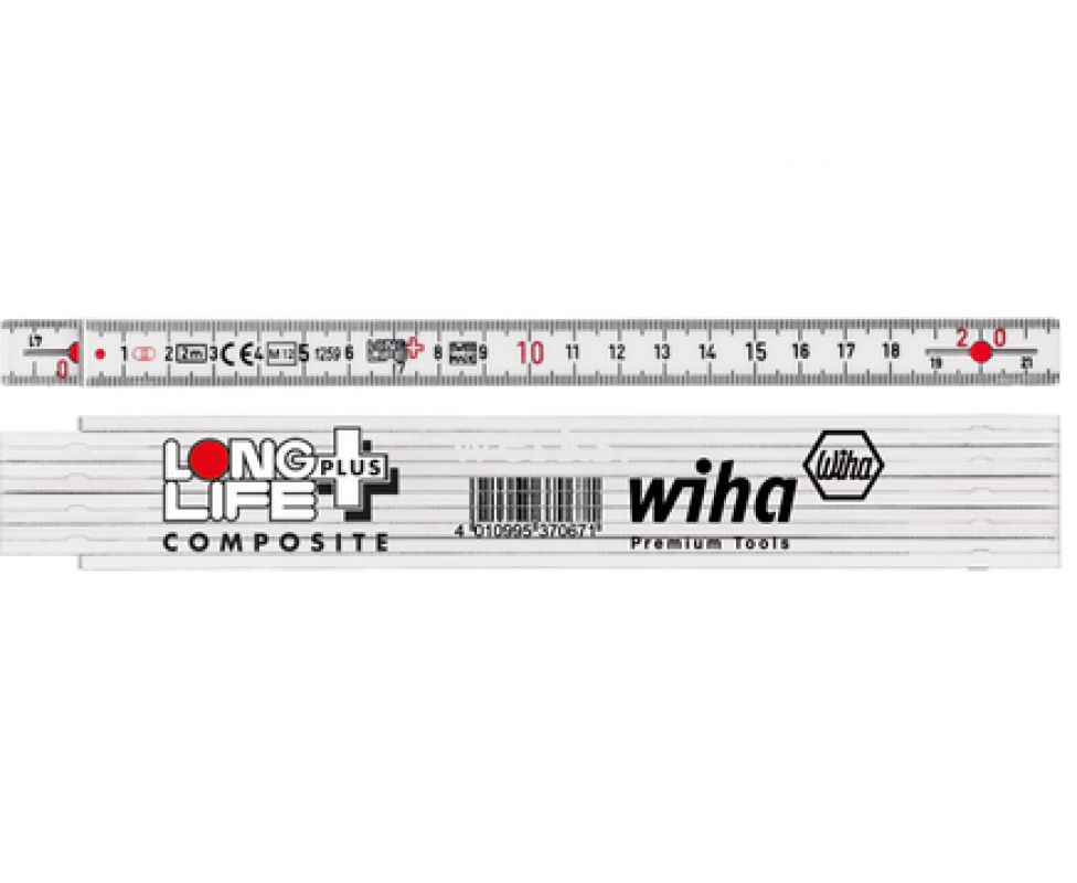 Метр складной Longlife Plus Composite 2 м Wiha 410 2005 37309 серый/белый