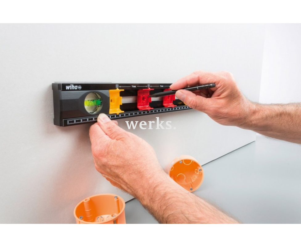 Компактный и надежный уровень предназначен для измерения как в горизонтальной, так и в вертикальной плоскости, а также для разметки расстояний между флеш-боксами. Оснащен подвижными маркировочными точками. Лазерные колбы обеспечивают точность ±0,5 мм на 1 м в горизонтальном положении и ±0,75 мм на 1 м в вертикальном. Положение пузырьков хорошо заметно даже под острым углом. Аналогичная модель - Sola 69057101.