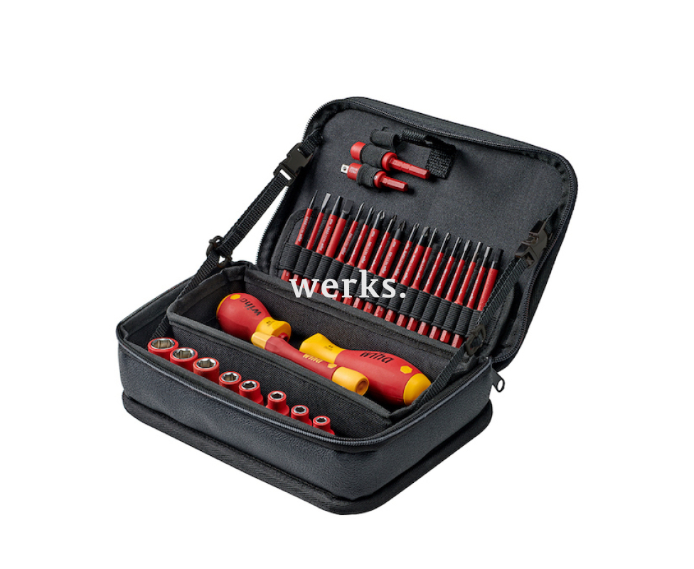 Профессиональный набор VDE инструментов, предназначенный для точных и аккуратных электротехнических работ. Сертификация VDE и GS. Безопасное использование до 1000 В переменного тока. Компактная и прочная сумка из нейлона для удобной переноски. В комплекте 31 элемент. Рукоятка: SoftFinish electric SlimVario