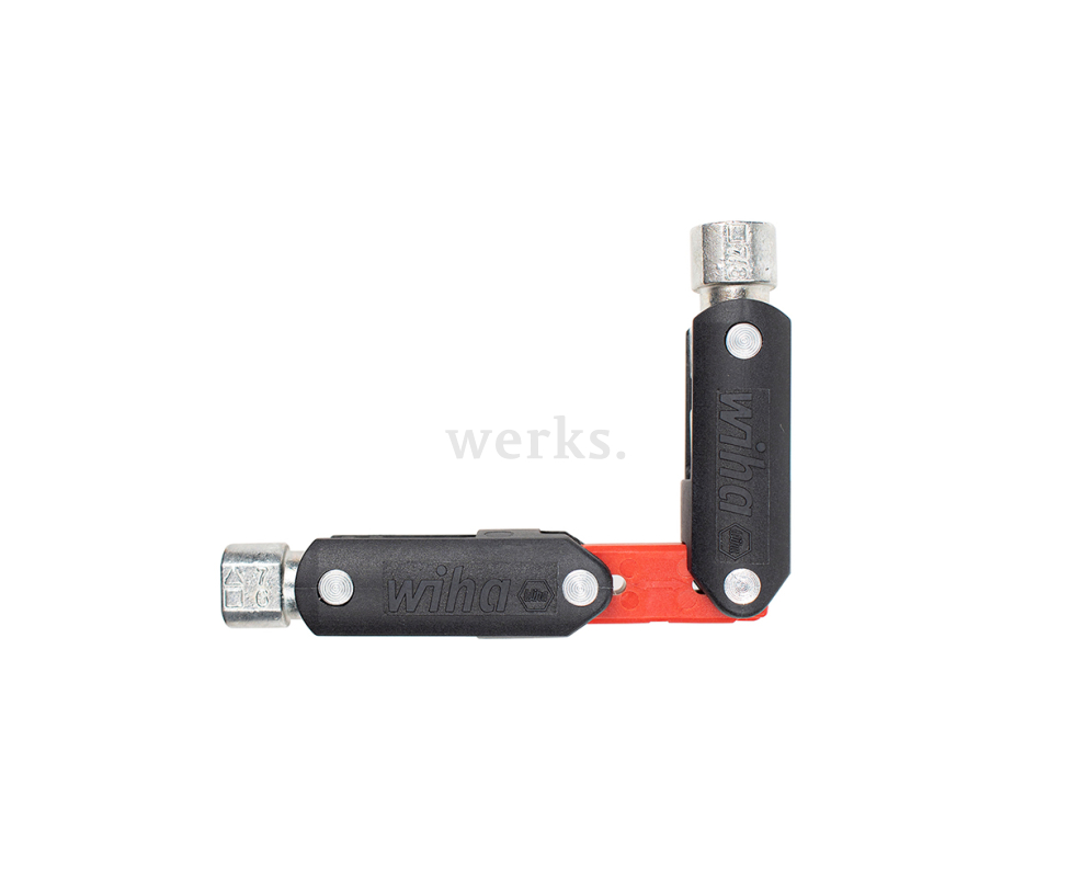 В запорных механизмах электрооборудования и распределительных шкафов применяются уникальные типы ключевых профилей, что требует использования специализированного инструмента. Универсальный ключ Wiha 44001 включает в себя 8 наиболее востребованных профилей, собранных в одном устройстве. Двойной шарнир обеспечивает компактное складывание ключа, что удобно для работы в ограниченных пространствах. Поворотные насадки изготовлены из цинкового сплава, а рычаги и соединители выполнены из армированного стекловолокном пластика.