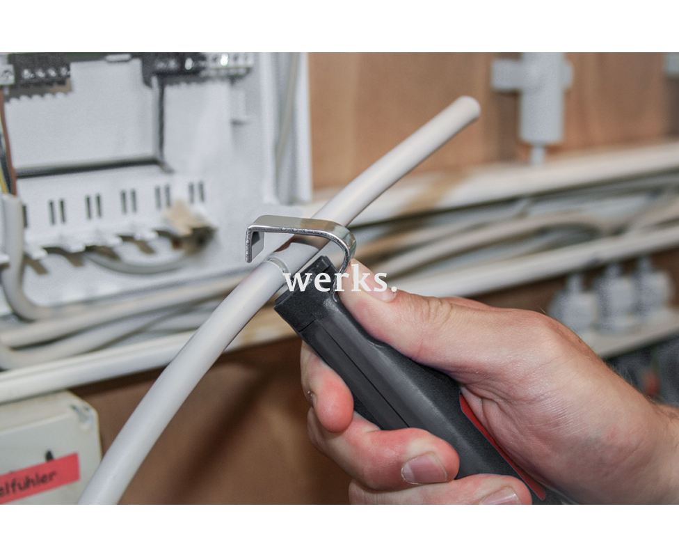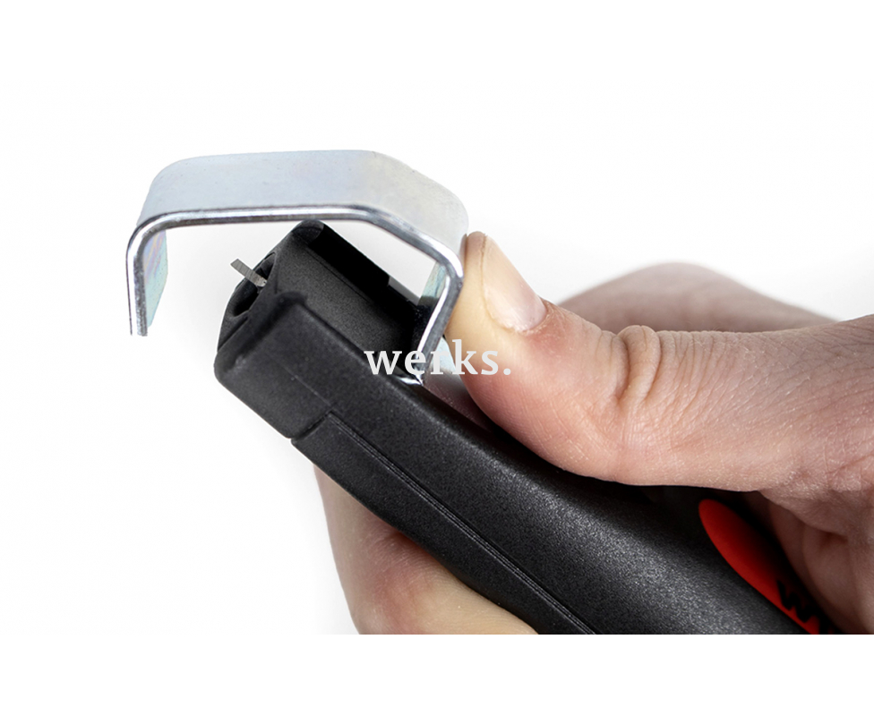 Профессиональный инструмент для снятия изоляции с вращающимся резцом Wiha 44240. Он предназначен для быстрой, точной и безопасной очистки круглых проводов диаметром от 4 до 28 мм. Оборудован продольным и поперечным резом, а также бесступенчатой настройкой глубины резания. Автоматическая перенастройка с поперечного на продольное резание осуществляется благодаря самовращающемуся внутреннему ножу. Внутри рукоятки ножа находится запасное лезвие.