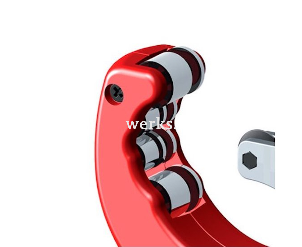 Ручной роликовый труборез предназначен для резки медных, алюминиевых и тонкостенных стальных труб диаметром от 1/4' до 3' (от 6 мм до 76 мм) с максимальной толщиной стенки 2 мм. Корпус выполнен из кованой стали. Устройство оснащено четырьмя направляющими роликами для улучшенного вращения. В труборез встроен съемный гратосниматель NOGA. Система быстрой замены отрезных роликов ICS обеспечивает удобство в работе. Телескопическая рукоятка с трещеткой добавляет функциональности. В комплект входят два отрезных ролика, один из которых находится в рукоятке трубореза. 7476-3