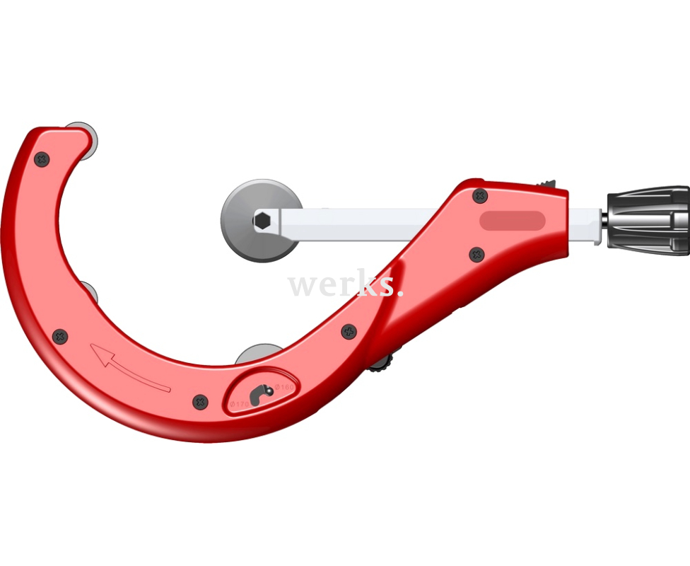 Ручной роликовый труборез предназначен для резки медных, алюминиевых и тонкостенных стальных труб диаметром от 4' до 6 5/8' (100 мм до 170 мм) с максимальной толщиной стенки 6 мм. Корпус выполнен из кованой стали. Устройство оснащено тремя направляющими роликами для улучшения вращения, причем третий ролик можно регулировать в двух положениях для оптимального направления реза. В труборез встроен съемный гратосниматель NOGA. Телескопическая рукоятка с трещеткой обеспечивает удобство в использовании. В комплект входит один отрезной ролик. 7478-1