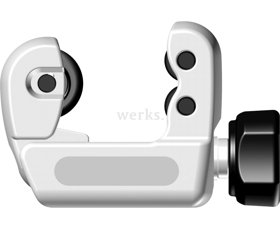 Компактный ручной труборез с роликовым механизмом предназначен для резки труб из нержавеющей стали диаметром от 1/8 дюйма до 1 1/8 дюйма (от 3 мм до 30 мм) с максимальной толщиной стенки 2,5 мм. У него уменьшенный радиус вращения вокруг трубы. Корпус выполнен из кованой стали. Стальной резьбовой шток вращается в стальной втулке. Отрезные и направляющие ролики изготовлены из нержавеющей стали и оснащены подшипниками. Система быстрой замены отрезных роликов ICS. В комплект входят два отрезных ролика (второй находится в рукоятке). 7530-1