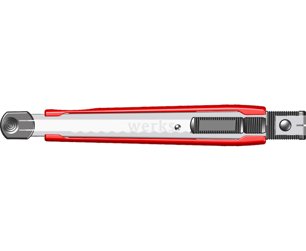 Многофункциональный канцелярский нож с выдвижным лезвием шириной 9 мм, оснащённый кнопкой для фиксации лезвия. Устройство для отламывания сегментов лезвия расположено на задней стороне ножа. В набор входят два запасных лезвия и защитный колпачок. 8703-3