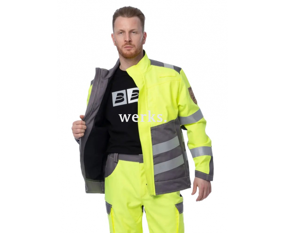 Летняя мультизащитная куртка Brodeks MS 28-61 – прочная антистатическая и термостойкая куртка повышенной видимости 2 класса. Устойчива к разным видам производственных загрязнений. Защищает от кратковременного воздействия пламени. Подойдёт специалистам энергетической, нефтяной, газовой отраслей. За счёт премиального качества и стильного дизайна идеально впишется в гардероб ИТР и руководителей. Антистатическая Термостойкая 2 класс видимости Защищает от кратковременного воздействия пламени Обеспечивает повышенную видимость МВО-защита, благодаря пропитке Hydrofoil Очень прочная, благодаря плетению ткани рип-стоп Термостойкая фурнитура Эргономичный крой Воротник-стойка Центральная молния под защитной планкой Удлинённая задняя часть 2 нагрудных кармана, 2 нижних кармана на молнии, 1 карман на подкладке Рукава на резинке Регулировка патами на липучках по низу куртки Светоотражающие ленты шириной 50 мм Материалы: Megatec 300N HYD FR, 75% хлопок, 24% полиэстер, 1% углеродное волокно, Плотность: 300 г/м2, отделка Hydrofoil