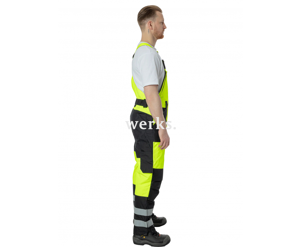 Мультизащитный полукомбинезон Brodeks MW 48-83В – зимний рабочий полукомбинезон 2 класса видимости с защитой от 6 рисков. Он устойчив к маслам, химикатам, растворам кислот и щелочей; не промокает и не продувается; защищает от кратковременного воздействия открытого пламени; не проводит статическое электричество; сохраняет тепло и обеспечивает повышенную видимость в темноте и плохую погоду. Спецодежда из мультизащитных тканей заменяет работнику сразу несколько костюмов. Какие бы работы он не выполнял, он всегда будет чувствовать себя защищённым, не будет тратить время на смену костюма под требуемые факторы защиты для иных условия труда. Такая одежда – практичный и экономный способ экипироваться профессионалам из большинства отраслей промышленностей: строительной, энергетической, нефтегазовой, нефтеперерабатывающей. 2 класс видимости Ветро- и водонепроницаемый Трехслойная мембрана 10000/15000 Температурный режим: до -20С° Эффективно отводит пар от тела Прочный за счёт плетения ткани рип-стоп Лёгкий для одежды такой степени защиты Термостойкая фурнитура Центральная застёжка с двумя замками, расстёгивается сверху и снизу Ветрозащитная планка поверх молнии Эластичная вставка на спине Лямки регулируются по длине Пояс с резинкой Широкие шлёвки под ремень Отделения под наколенники с нижней загрузкой Молнии по низу брюк для быстрого переобувания 7 карманов: 2 на груди, 2 грузовых на штанинах, 1 задний карман, 2 узких на правом бедре для инструментов или электродов Петля для подвеса инструментов СВ-ленты 5 см шириной Материалы: Материал верха:мультизащитная ткань Rip-Stop (100% полиэфир) с карбоновой нитью и МВО-пропиткой, плотность 250 г/м2 Материал подкладки: огнетермостойкая антистатическая подкладочная ткань (49% огнестойкая вискоза, 45% метаарамид, 5% параарамид, 1% антистатическая нить), плотность 120г/м2 Утеплитель: Слайтекс FR файер стоп, устойчивый к искре пламени и электродуге, плотность 150 г/м2 Мембрана: 100% полиэстер, влагонепроницаемость 10000мм; паропроницаемость 15000 г/м2/24 часа)