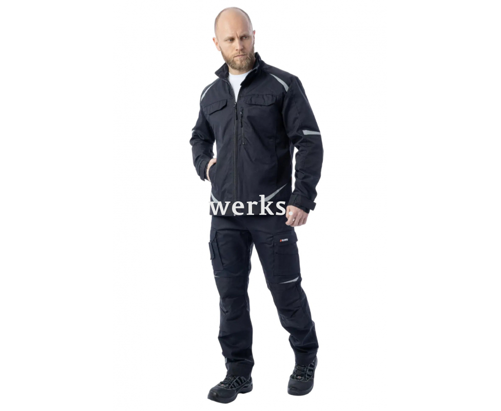 Куртка мужская летняя Brodeks KS 202 — многофункциональная куртка из серии "Заряженный", универсальная экипировка для тех, кто ценит надёжность и стиль в любых рабочих условиях. Сочетая полуприталенную посадку и дизайн на грани спецодежды и casual, она подчёркнет ваш профессиональный статус на стройплощадке, в цеху или на производственном объекте. Ключевые зоны износа (локти, манжеты, низ) усилены прочной тканью Forcedura, устойчивой к истиранию и механическим повреждениям, а основа из материала Workshell (35% хлопок, 65% полиэстер) обеспечит комфорт и защиту от загрязнений. 7 функциональных карманов, включая нагрудный на молнии и внутренний для документов формата А4, светоотражающие элементы и вентиляционные зоны в подмышках делают эту модель незаменимой для ежедневных задач. Благодаря отделке Easy Care сохраняет вид даже после интенсивной эксплуатации. Отличный выбор для ИТР и руководителей. А так же для всех, кому необходим баланс надежности, функциональности и современного дизайна. Полуприталенная посадка Складки в области лопаток для свободы движений Внутрення подкладка из тонкой смесовой ткани Отделочные строчки в цвет ткани Локти, манжеты, низ куртки укреплены Forcedura 7 карманов Удлинённая задняя часть Светоотражающие вставки Материалы: Материал верха: Workshell 35% хлопок, 65% полиэфир, плотность 245 г/м2 Усиления (локти, манжеты, низ): Forcedura (100% полиамид) Ткань Workshell fabric плотностью 245 гр/м2 устойчива к разрывам и истиранию. Выдерживает интенсивные нагрузки. Хлопок обеспечивает мягкость и комфорт, а полиэстер - прочность и долговечность. Специальная отделка Easy Care упрощает уход, сохраняет цвет и структуру ткани. Forcedura - высокотехнологичная ткань, плотностью 215 гр/м2, с водоотталкивающими свойствами. Волокна полиамида обладают исключительной устойчивостью к механическим воздействиям и сохраняют структуру после многократных стирок. Используется в местах подверженных максимальной нагрузке и легко очищается от загрязнений.