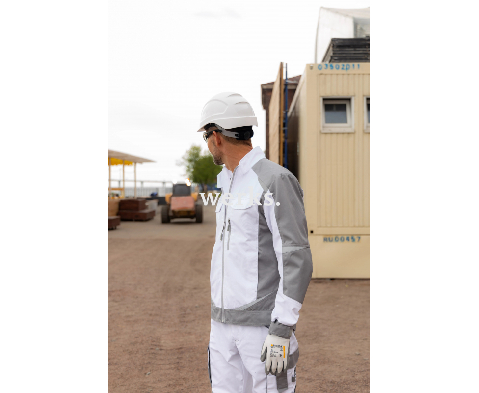 Куртка мужская летняя Brodeks KS 202 — многофункциональная куртка из серии "Заряженный". Выбор мастеров, которые работают с красками, штукатуркой и плиткой. Универсальный оттенок маскирует мелкие загрязнения, сохраняя опрятный вид даже после контакта с побелкой или белой строительной пылью. Ключевые зоны износа (локти, манжеты, низ) усилены прочной полиамидной тканью, устойчивой к истиранию и механическим повреждениям, а основа из смесового материала (35% хлопок, 65% полиэстер) обеспечит комфорт и защиту от загрязнений. 7 функциональных карманов, включая нагрудный на молнии и внутренний для документов формата А4, светоотражающие элементы и вентиляционные зоны в подмышках делают эту модель незаменимой для ежедневных задач. Благодаря отделке Easy Care сохраняет вид даже после интенсивной эксплуатации. Полуприталенная посадка Складки в области лопаток для свободы движений Внутрення подкладка из тонкой смесовой ткани Отделочные строчки в цвет ткани Локти, манжеты, низ куртки укреплены OXFORD 600D 7 карманов Удлинённая задняя часть Светоотражающие вставки Материалы: Материал верха: смесовая ткань 35% хлопок, 65% полиэфир, плотность 245 г/м2 Усиления (локти, манжеты, низ): OXFORD 600D (100% полиэстер), плотность 220 г/м2 Смесовая тканьплотностью 245 гр/м2 устойчива к разрывам и истиранию. Выдерживает интенсивные нагрузки. Хлопок обеспечивает мягкость и комфорт, а полиэстер - прочность и долговечность. Специальная отделка Easy Care упрощает уход, сохраняет цвет и структуру ткани.