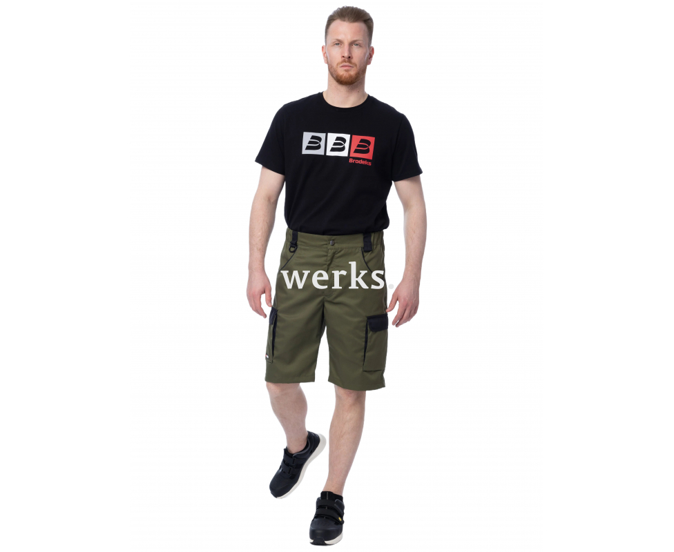 Рабочие шорты Brodeks KS 314 – функциональные и практичные шорты. Сшиты из смесового, износостойкого материала. Специальная отделка ткани упрощает уход за изделием, его достаточно просушить в расправленном виде, на ткани не образуются катышки. Крой свободный, не сковывающий движений. За счет простого дизайна и удобства использования шорты отлично подойдут как для работы, так и для города. Износостойкие и лёгкие в уходе Долго сохраняют презентабельный внешний вид Пояс на резинке Широкие шлёвки 6 карманов, в том числе два набедренных с клапанами Пластиковое полукольцо Материалы: Материал верха: Workshell 35% хлопок, 65% полиэфир, плотность 245 г/м2 Ткань Workshell fabric плотностью 245 гр/м2 устойчива к разрывам и истиранию. Выдерживает интенсивные нагрузки. Хлопок обеспечивает мягкость и комфорт, а полиэстер - прочность и долговечность. Специальная отделка Easy Care упрощает уход, сохраняет цвет и структуру ткани. Подробнее о ткани...
