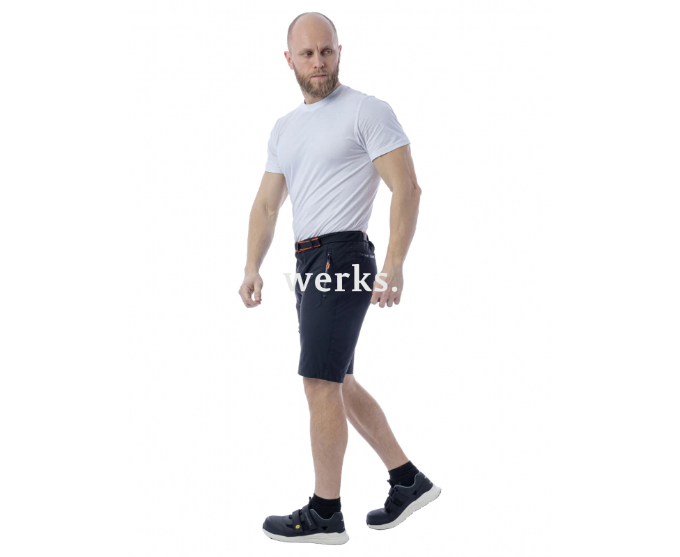 Прочные стрейч шорты из нейлона и эластана сочетают функциональность спецодежды и стиль повседневной одежды. Материал отличается высокой эластичностью, возвращает форму после растяжения, предотвращая деформацию. Быстро сохнет, отталкивает влагу. Легкие и дышащие, шорты сохраняют форму даже после частых стирок. Подходят для работы и повседневной носки. Выбирайте размер в размер для слимфит посадки или на размер больше для более свободного кроя. Материалы: 92% нейлон, 8% эластан, плотность 250 гр/м2