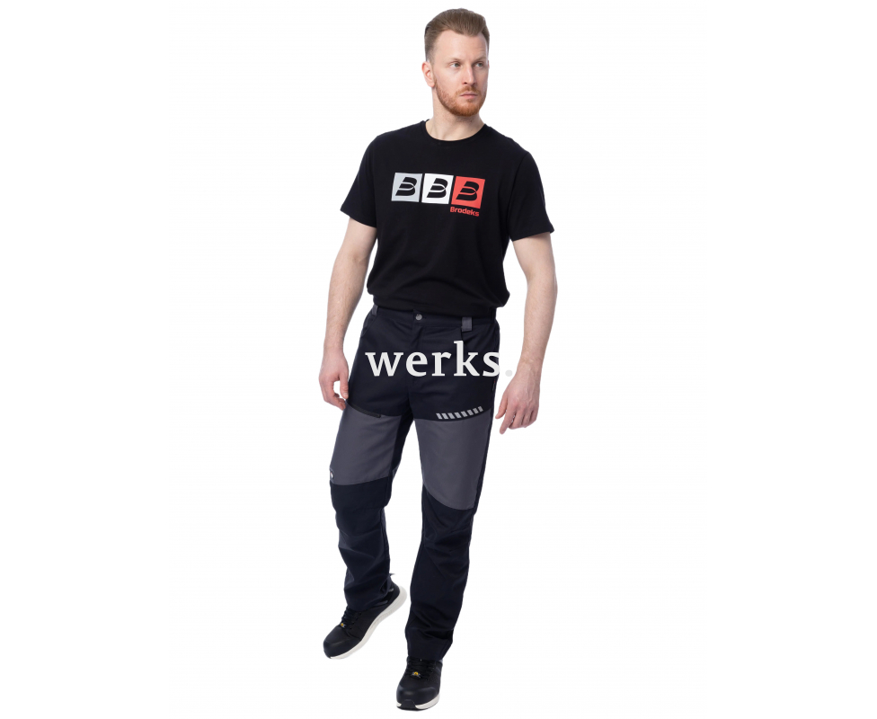 Брюки мужские летние Brodeks KS 334 – рабочие брюки для специалистов и рабочих, которым важны практичность, аккуратный внешний вид и удобство спецодежды по оптимальной цене. Брюки сшиты из смесовой ткани Workshell. Она износостойкая и не требует сложного ухода. Подходят для работы в помещениях круглый год или летом на улице. Продуманный крой коленей Широкие шлёвки 4 кармана Регулировка объёма по низу штанин Удлинение брюк на 5 см Светоотражающие элементы Отделочные строчки в цвет ткани Материалы: Материал верха: Workshell 35% хлопок, 65% полиэфир, плотность 245 г/м2 Ткань Workshell fabric плотностью 245 гр/м2 устойчива к разрывам и истиранию. Выдерживает интенсивные нагрузки. Хлопок обеспечивает мягкость и комфорт, а полиэстер - прочность и долговечность. Специальная отделка SoftTouch упрощает уход, сохраняет цвет и структуру ткани.