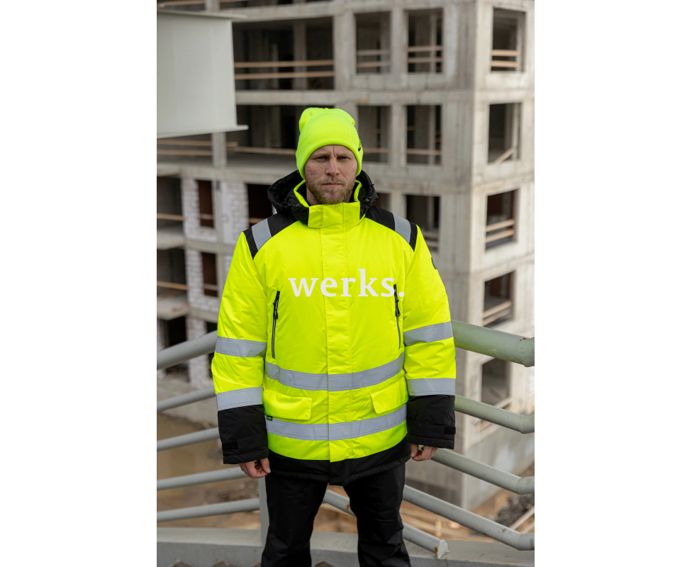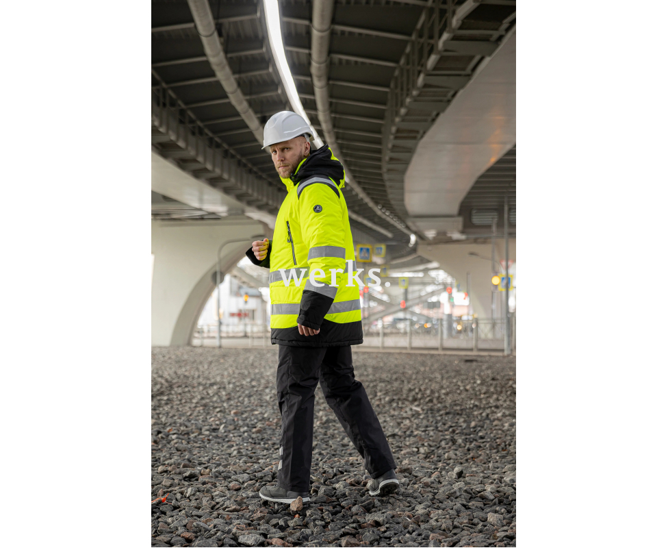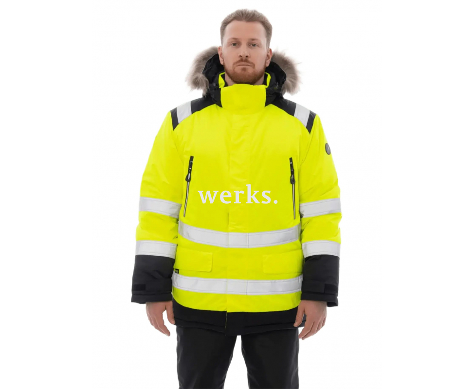 Зимняя рабочая куртка-парка BRODEKS KW 217 – зимняя сигнальная куртка 2 класса видимости. Сшита из прочной мембранной ткани рипстоп.