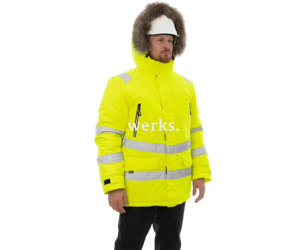Зимняя сигнальная куртка-парка BRODEKS KW220, желтый/черный - зимняя парка жёлтого флуоресцентного цвета со светоотражающими лентами. Сшита из прочной мембранной ткани рипстоп. Обеспечивает надёжную защиту от ветра и осадков и хорошо отводит влагу. Куртка прочная на разрыв, устойчива к механическим повреждениям Мембрана (10000/10000) не пропускает ветер и осадки, отводит пар наружу Ткань рипстоп. Куртка устойчива к механическим повреждениям Тёплый капюшон отстёгивается, регулируется, подходит для ношения с каской Высокий воротник с флисовой подкладкой Двойная ветрозащитная планка Регулировка в талии 8 карманов: 4 снаружи, 4 внутренних Жёлтый флуоресцентный цвет Светоотражающие ленты с высоким коэффициентом отражения Свободный крой Материалы: Материал верха: Hard Guard (100% полиэстер, плотность: 145 гр/м2, DWR-пропитка) Мембрана: 10000/10000 Утеплитель: ThermoShield 360 г Hard Guard - высокотехнологичный материал для изделий, которые должны выдерживать активную эксплуатацию, смену погодных условий и интенсивные нагрузки. Ткань сочетает в себе высокую прочность, малый вес и высокие эксплуатационные характеристики. Мембрана обеспечивает надёжную защиту от дождя и ветра при сохранении способности ткани «дышать». Специальное плетение Rip-Stop повышает износостойкость и предотвращает распространение разрывов. ThermoShield - инновационный утеплитель, созданный для современной рабочей одежды. Благодаря уникальной структуре волокон он сочетает в себе превосходную защиту от холода, исключительный комфорт и долговечность. Разработан с учетом потребностей специалистов различных профессий, работающих в сложных погодных условиях.
