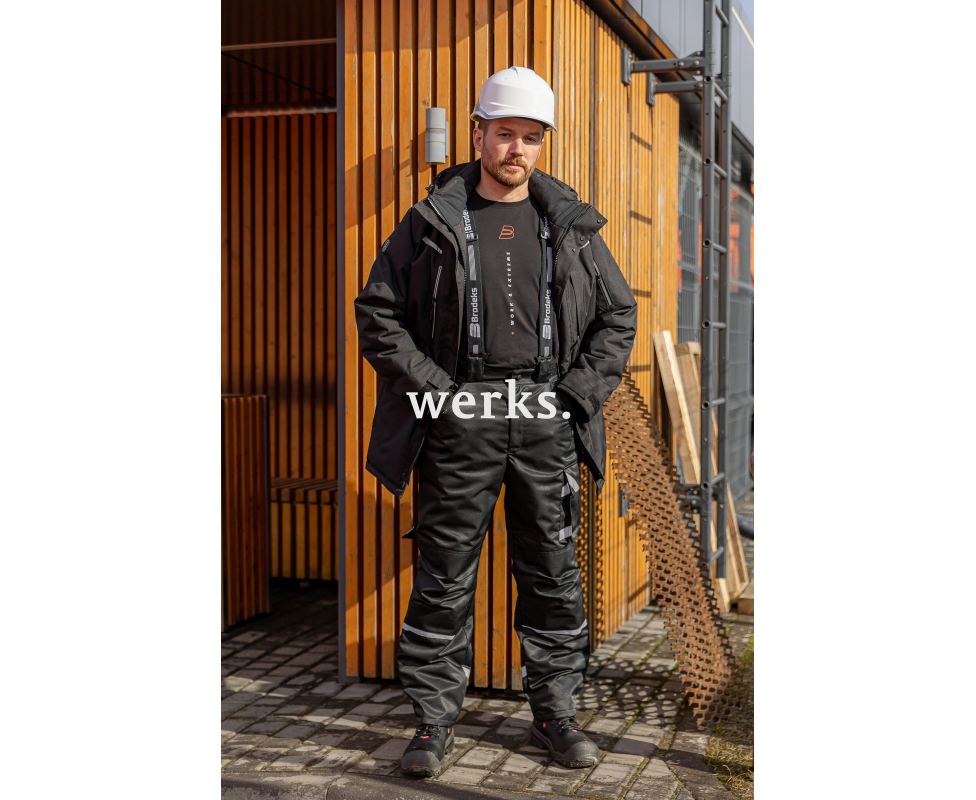 Зимние брюки KW 304 – универсальный вариант для работ в условиях сильных загрязнений. Брюки предназначены для пыльных и масляных работ Защита от масел, брызг кислот и щелочей, воды Светоотражающие вставки Завышенная задняя часть для защиты поясницы от продувания Есть регулировка на поясе с помощью резинки и липучки 7 карманов: два косых кармана для рук, один верхний на молнии, задний карман, боковые карманы – один для инструментов и один с двумя входами для хранения деталей. Есть отделения для наколенников на липучке Брюки можно носить с поясом, есть широкие шлёвки По низу брюк – снегозащитные манжеты и молния по бокам для высокой обуви Материалы: Материал верха: Rebel (33% хлопок, 67% полиэфир), 245 г/м2, МВО-пропитка Утеплитель: Shelter (100% полиэстер), 120 г/м2 При помощи технологии биверного плетения полиэфир в составе ткани Rebel выведен наружу. Ткань дополнительно обработана масловодооталкивающей пропиткой. Таким образом обеспечивается высокая устойчивость к различным видам загрязнений, маслам, растворам кислот и щелочей. Подробнее о ткани...