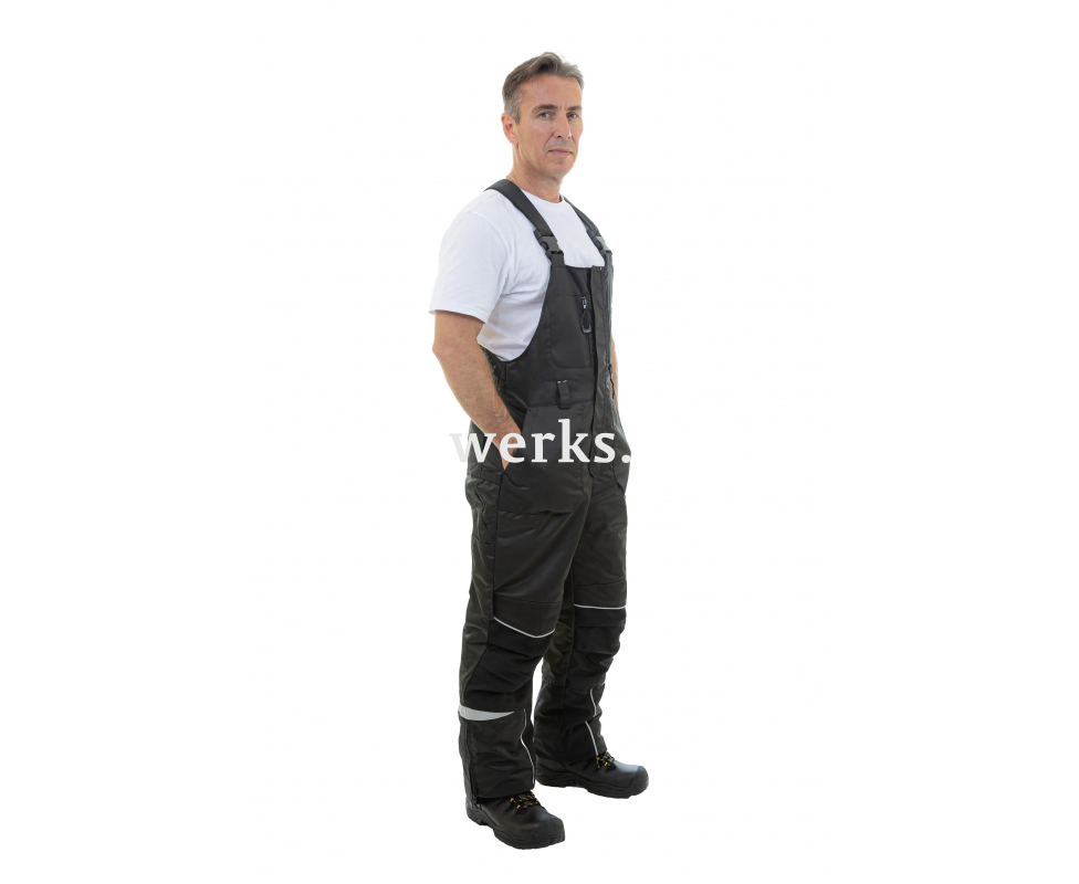 Зимний полукомбинезон KW 403 – вариант спецодежды для работ с горюче-смазочными материалами. Полукомбинезон предназначен для пыльных и масляных работ Защищает от масел, брызг кислот и щелочей, воды Светоотражающие вставки Вставки из износостойкого материала в области колен и по низу изделия. Есть отделения для наколенников Центральная молния с двумя замками – можно расстегивать молнию снизу Лямки комбинезона регулируются, застежки - фастекс Есть широкая эластичная вставка на спинке Комбинезон можно носить с поясом, есть широкие шлёвки 7 открытых карманов, один карман на молнии для телефона Есть полукольцо для бейджа По низу брюк – снегозащитные манжеты и молния по бокам для высокой обуви Температурный режим: от -10 до -20 градусов Материалы: Материал верха: Rebel (33% хлопок, 67% полиэфир), 245 г/м2, МВО-пропитка Усиления на коленях и по низу брюк: Forcedura (100% полиамид) Утеплитель: Shelter (100% полиэстер), 120 г/м2 При помощи технологии биверного плетения полиэфир в составе ткани Rebel выведен наружу. Ткань дополнительно обработана масловодооталкивающей пропиткой. Таким образом обеспечивается высокая устойчивость к различным видам загрязнений, маслам, растворам кислот и щелочей. Forcedura - высокотехнологичная ткань, плотностью 215 гр/м2, с водоотталкивающими свойствами. Волокна полиамида обладают исключительной устойчивостью к механическим воздействиям и сохраняют структуру после многократных стирок. Используется в местах подверженных максимальной нагрузке и легко очищается от загрязнений. Подробнее о ткани...