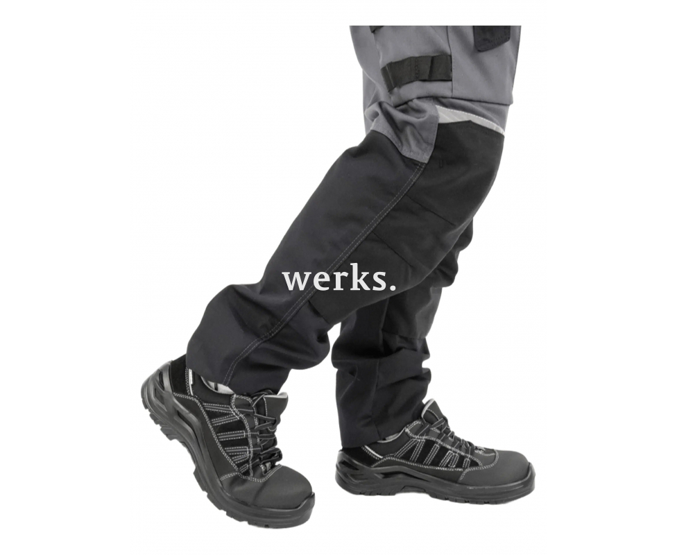 Полуботинки летние мужские Brodeks Cyclone BRS102 S1P, черный - легкая, удобная и привлекательная защитная обувь с прекрасными водоотталкивающими свойствами и высокой степенью защиты. Верх обуви выполнен из комбинации натуральной кожи, защищающей от влаги, и легкого дышащего текстиля. Это позволяет обеспечить комфорт и высокую степень защиты при небольшом весе обуви. Основные области применения: подходит для уличных работ в летний и демисезонный период, а также для круглогодичных работ в помещении. Рекомендуется для таких сфер, как строительство, монтажные работы, обслуживание техники и оборудования, отделочные работы. Индивидуальный короб Примерный вес обуви: 1,2 – 1,8 кг Материалы: Верх: натуральная кожа (замша) + текстильные вставки + усиленная вставка в носочной части Мягкий кант: кордура Подошва: двухслойная (ПУ/ПУ) Подкладка: текстиль Подносок: композитный (200 Дж) Неметаллическая антипрокольная стелька (1200 Н·м) Стелька: анатомическая с двумя зонами амортизации Носочная часть: защитная ТПУ вставка