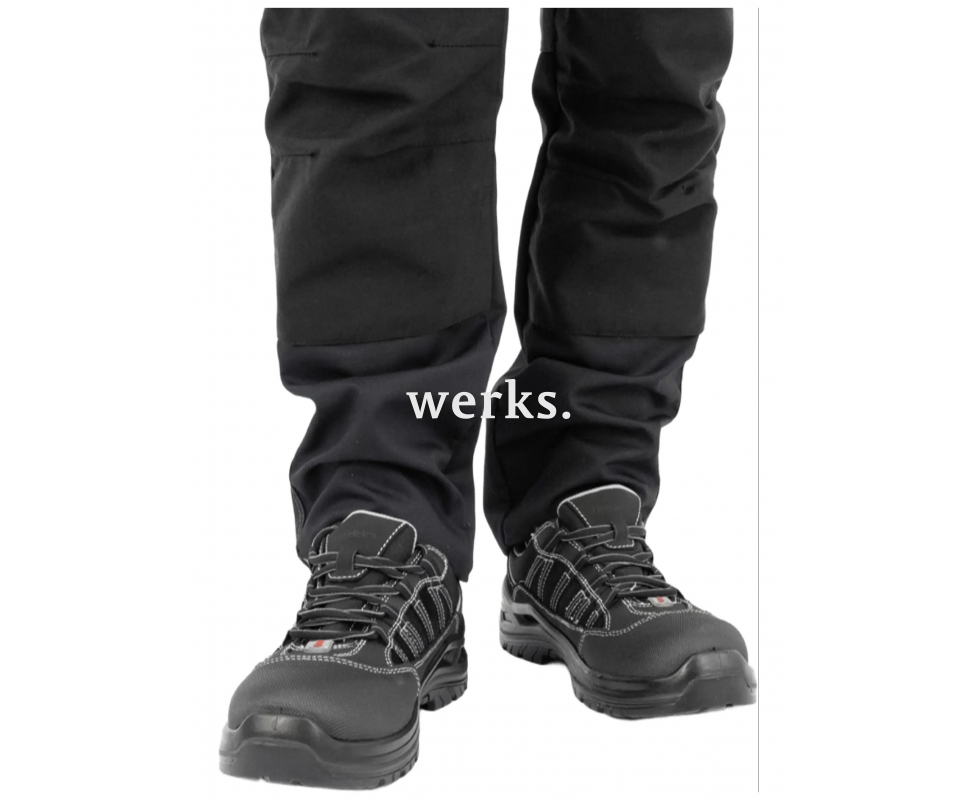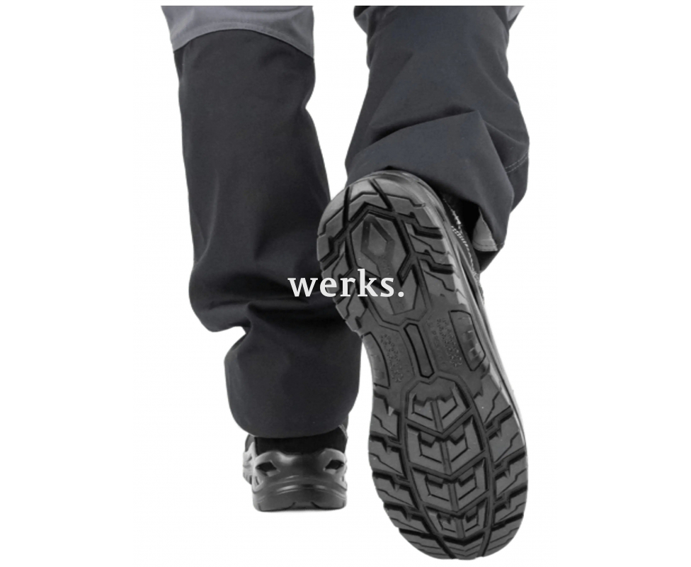 Полуботинки летние мужские Brodeks Cyclone BRS102 S1P, черный - легкая, удобная и привлекательная защитная обувь с прекрасными водоотталкивающими свойствами и высокой степенью защиты. Верх обуви выполнен из комбинации натуральной кожи, защищающей от влаги, и легкого дышащего текстиля. Это позволяет обеспечить комфорт и высокую степень защиты при небольшом весе обуви. Основные области применения: подходит для уличных работ в летний и демисезонный период, а также для круглогодичных работ в помещении. Рекомендуется для таких сфер, как строительство, монтажные работы, обслуживание техники и оборудования, отделочные работы. Индивидуальный короб Примерный вес обуви: 1,2 – 1,8 кг Материалы: Верх: натуральная кожа (замша) + текстильные вставки + усиленная вставка в носочной части Мягкий кант: кордура Подошва: двухслойная (ПУ/ПУ) Подкладка: текстиль Подносок: композитный (200 Дж) Неметаллическая антипрокольная стелька (1200 Н·м) Стелька: анатомическая с двумя зонами амортизации Носочная часть: защитная ТПУ вставка