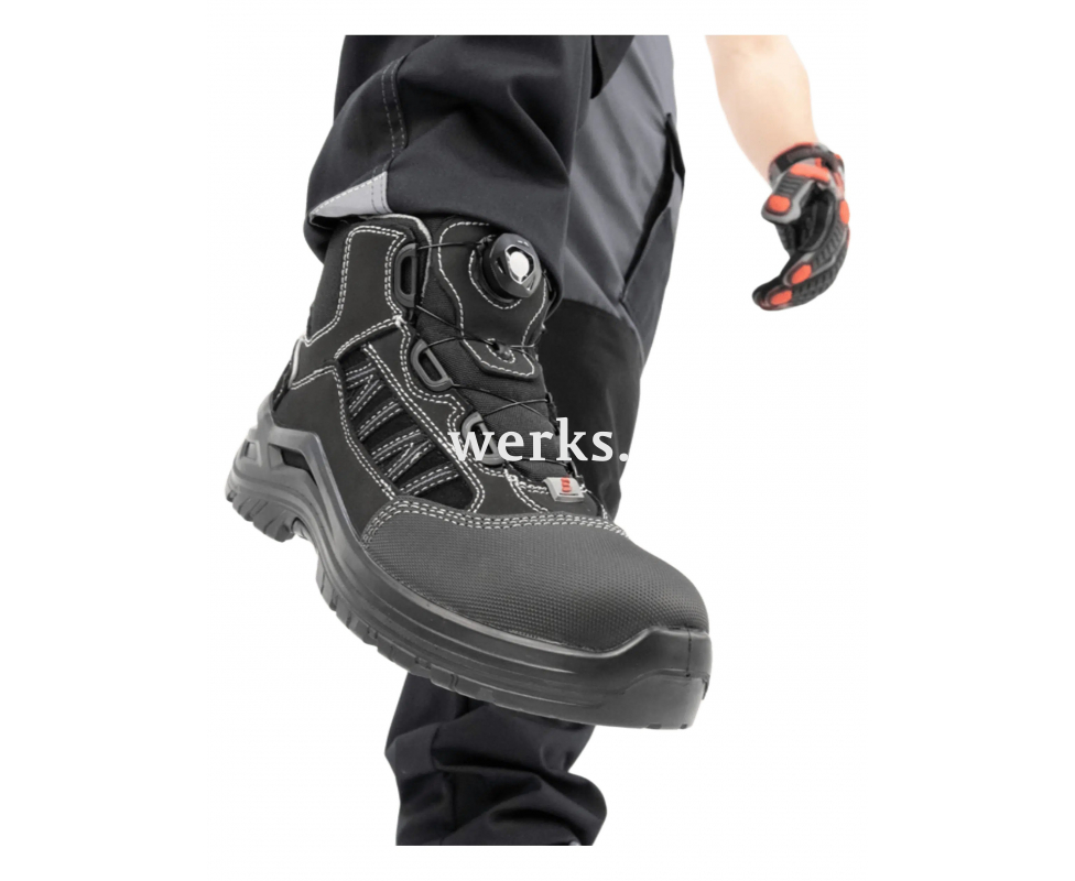 Ботинки летние мужские Brodeks Icon BRS103, черный - легкая, удобная и привлекательная защитная обувь с прекрасными водоотталкивающими свойствами и высокой степенью защиты. Верх обуви выполнен из комбинации натуральной кожи, защищающей от влаги, и легкого дышащего текстиля. Это позволяет обеспечить комфорт и высокую степень защиты при небольшом весе обуви. Отличительной особенностью ботинок является система быстрой шнуровки FitGo. Основные области применения: подходит для уличных работ в летний и демисезонный период, а также для круглогодичных работ в помещении. Рекомендуется для таких сфер, как строительство, монтажные работы, обслуживание техники и оборудования, отделочные работы. Индивидуальный короб Примерный вес обуви: 1,4 – 2 кг Материалы: Верх: натуральная кожа (замша) + текстильные вставки + усиленная вставка в носочной части Мягкий кант: кордура Подошва: двухслойная (ПУ/ПУ) Подкладка : текстиль Фурнитура: система быстрой шнуровки FitGo Носочная часть: защитная ТПУ вставка