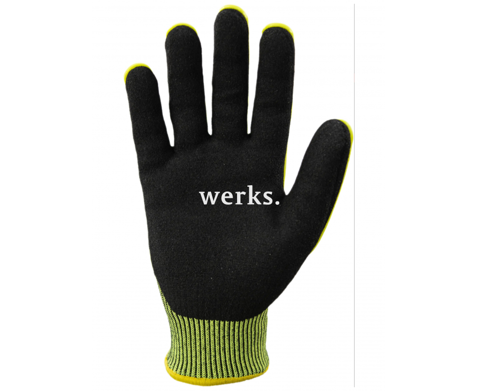 Перчатки от порезов противоударные с нитриловым покрытием Brodeks Defender GС-22i предназначены для работ средней тяжести. Основа перчаток HPPE - синтетическое волокно, обеспечивающее стойкость к истиранию, разрыву и порезу. Нитрильное покрытие пальцев и ладони перчаток типа «песок» позволяет сохранить крепкий хват на сухой, влажной поверхности. Защитные накладки из термопластичной резины (TPR) надежно защищают всю поверхность тыльной поверхности кисти рук и пальцев, при этом не мешая гибкости и подвижности. Основные области применения: Нефтегазовая промышленность, горнодобывающая промышленность, строительство, машиностроение, металлургия, производство Идеальная посадка по руке Покрытие устойчиво к любым видам ГСМ и не пропускает влагу Материалы: Основа: Полиэтилен высокого давления (HPPE), спандекс, нейлон Облив ладони: нитрил «песок» Тыльная сторона: TPR