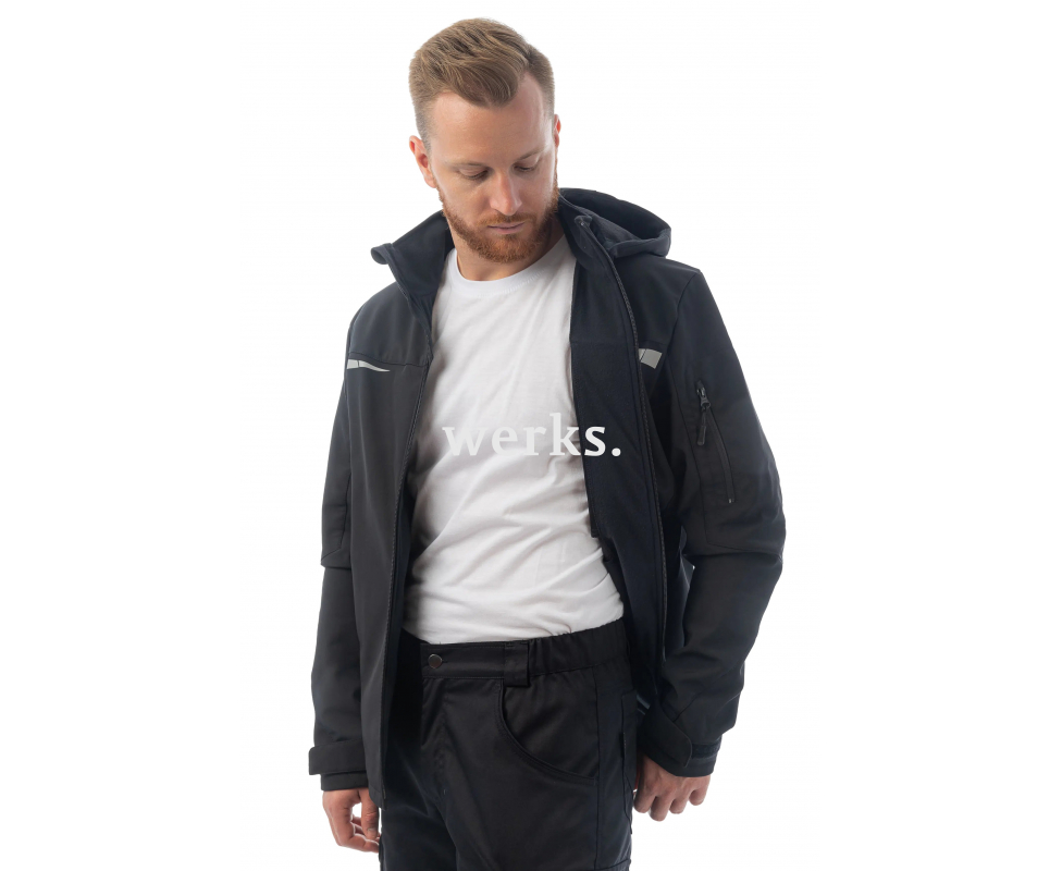 Куртка Софтшелл Brodeks KS207, чёрный – лёгкая и стильная слегка удлиненная демисезонная куртка из софтшелла. Гарантирует защиту от ветра и осадков. Материал эластичный, не мнётся, за счёт чего куртка отлично садится по фигуре. Высокий показатель паропроницаемости в 5 000 обеспечивает комфортный микроклимат. Куртка застёгивается на молнию. Воротник-стойка защищает шею от холода. Защита от дождя и ветра Съёмный капюшон, регулируется Усиление износостойкой тканью в области локтей Регулировка манжет Карманы для рук, нагрудный карман, карман на рукаве, внутренние карманы За дополнительную вентиляцию отвечают отверстия в зоне подмышек Воротник стойка с микрофлисом Светоотражающие элементы Материалы: софштелл (92% полиэстер, 8% эластан) + DWR-пропитка